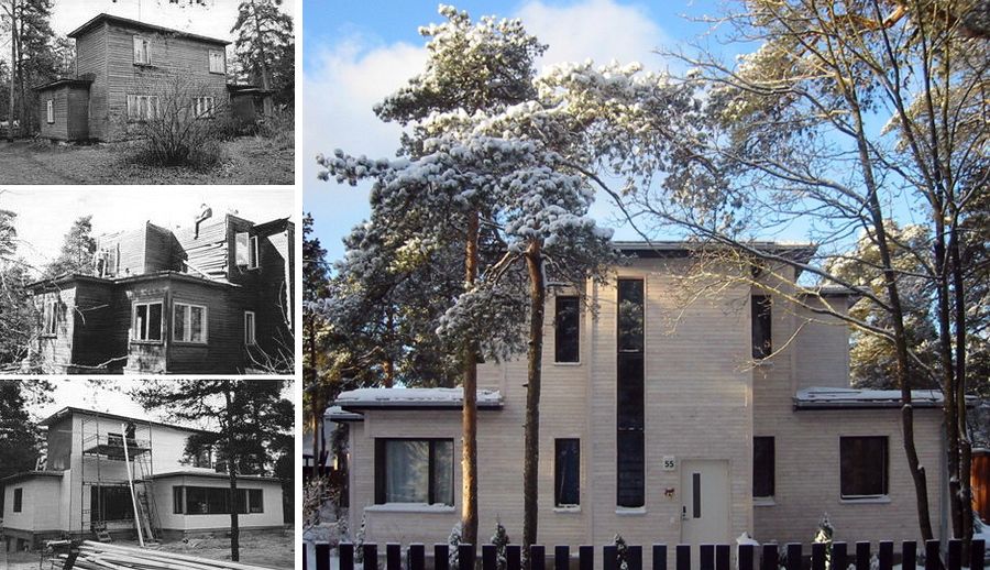 The owner is a fan of Independence era (I -II WW) Estonian architecture purchasing a unique wood-clad functionalist house for his family. It turned out that the wood structure was in such bad terrible shape the house had to be completely demolished. Finally, even the limestone half-basement collapsed. All that was left was a large sandy hole amidst the garden city pines. The new dwelling has the original`s exact massing, but added is a full basement with car parking, and a sympathetically proportioned one-story living room extension to the rear.